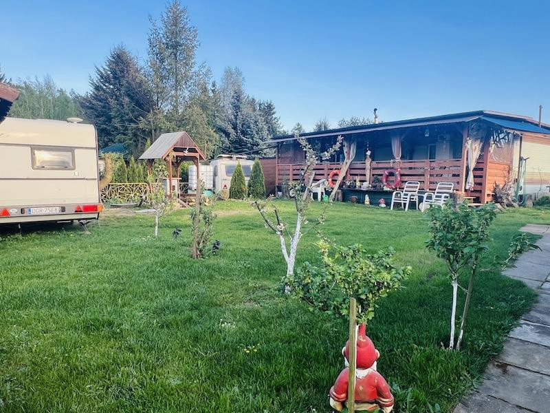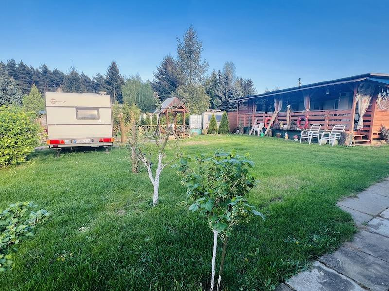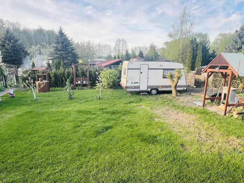 Na przedmiotowej działce (udziale) posadowiony jest domek holenderski, garaż blaszany oraz 2 przyczepy campingowe (na jednej z nich zamontowano solary- które zasilają wszystkie przyczepy.