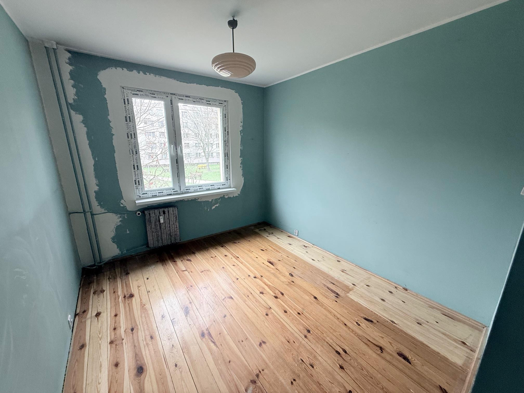 ściany wykończone gładzią, nowe okna PCV trzyszybowe (bardzo dobra izolacja termiczna i akustyczna)